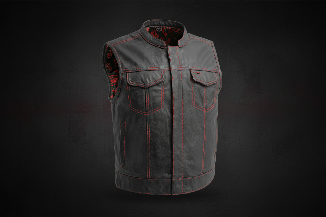 The Cut Men's Motorcycle Leather Vest Looking for a club style vest? The Club Cut is our more budget-priced version of a club vest. Crafted from soft, milled cowhide, this vest still has some of our best features. Four pockets up front, a single panel back and mesh lining with easy access panels for easy patching. And of course, two conceal carry pockets! Features: 0.9 - 1.0 mm soft Milled Cowhide Club style vest with banded collar, covered snaps and hidden cropped center zipper Two snap down chest pockets Two snap down slash pockets Two conceal carry pockets with tapered holsters Interior cellphone pocket Single panel back up to size 5XL Mesh lining with easy access panels for patches and embroideries YKK zippers CUT 2 INCHES SHORTER