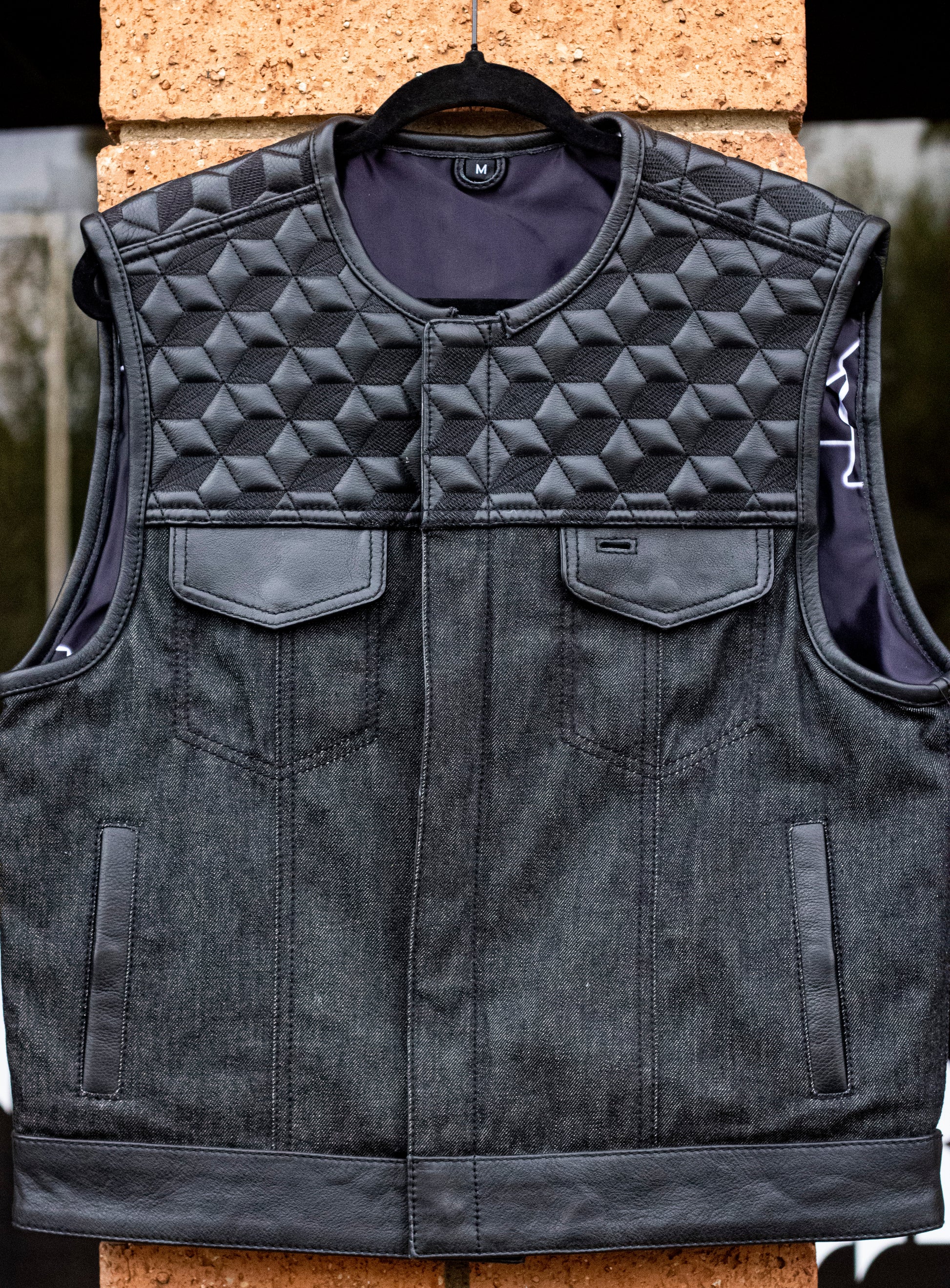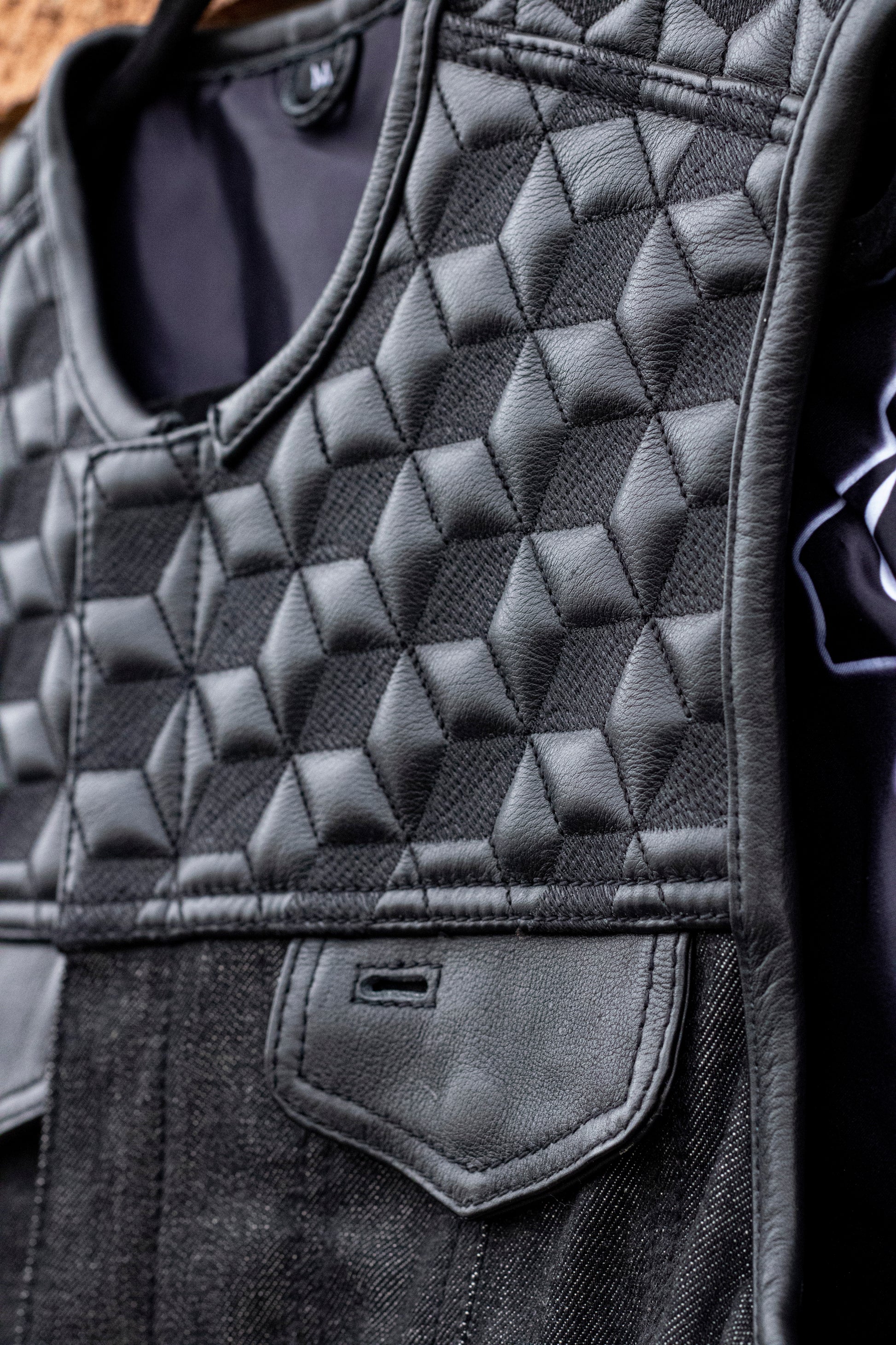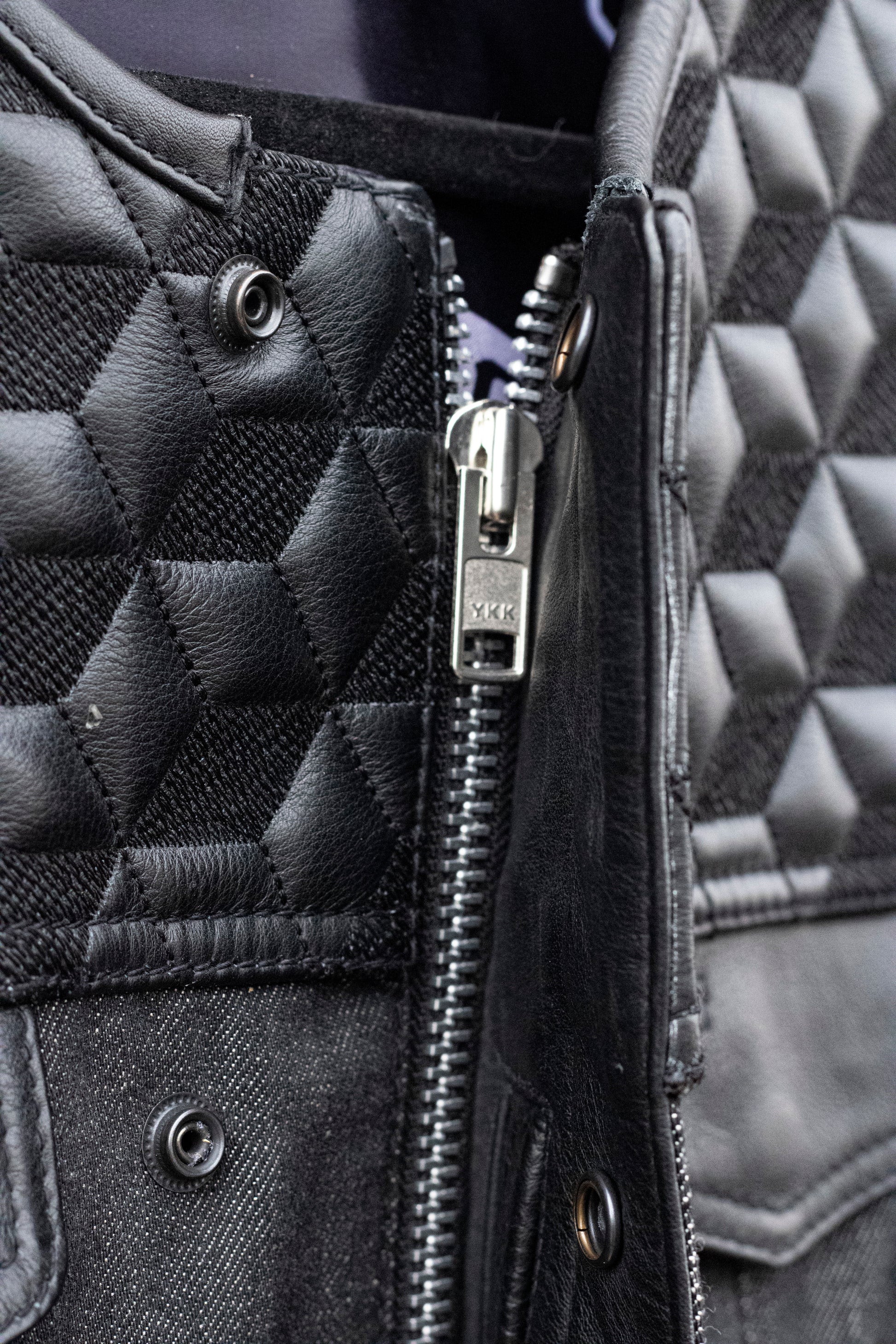 Black Leather top custom stitching - Black Denim Torso - Leather Pocket lining & bottom liner